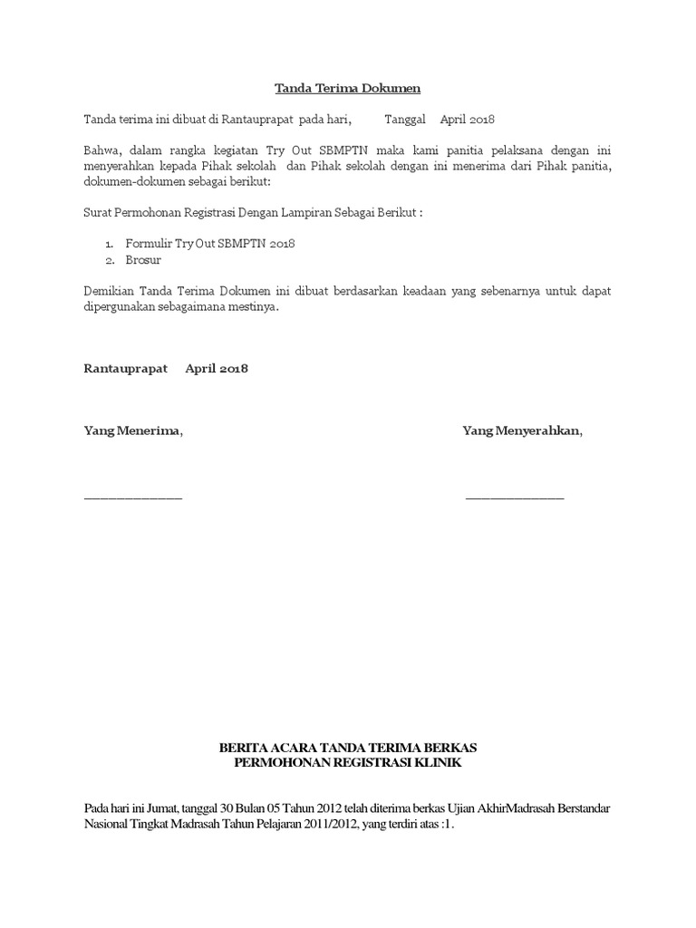 Download contoh surat tanda terima dokumen serba guna. Surat serah terima dokumen perusahaan. Surat permohonan registrasi dengan lampiran sebagai berikut : Download draf surat tanda terima dokumen. Contoh surat tanda terima jaminan yang legal.